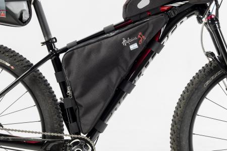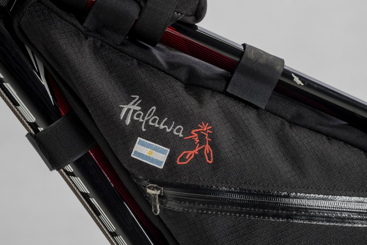 Desarrollamos un arnés que nos permite anclar el bolso de manera muy segura. Se encuentra a lo largo de todo el perímetro del bolso, tomando extremo cuidado de no interferir con otros bolso sni con la fijación del descarrilador.
