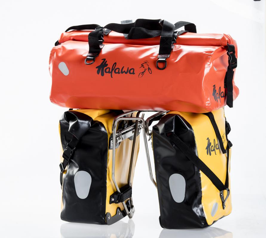 Este bolso fue diseñado para dar una solución de transporte y protección a todas las cosas que llevamos por fuera de las alforjas y siempre terminan fijadas por encima de ellas (carpa, bolsa de dormir, aislante, etc.). Se ubica por encima de las alforjas.